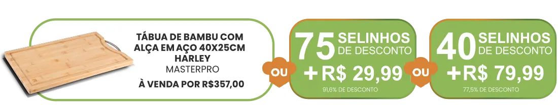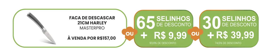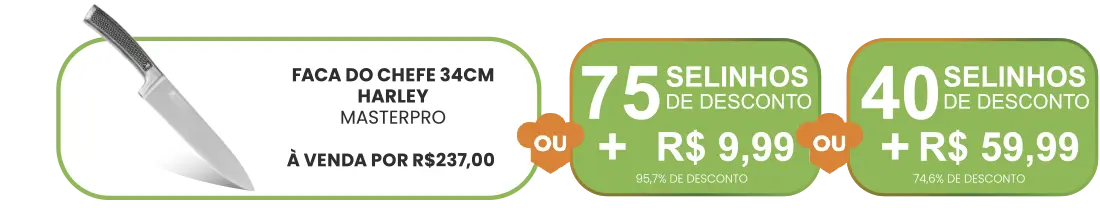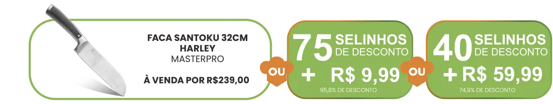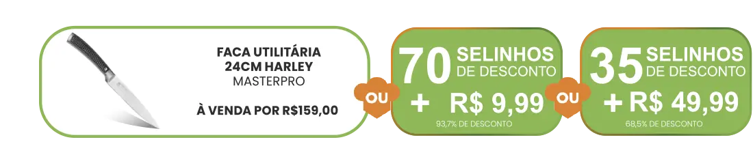 Compra com desconto das facas, tábua e afiador participantes (valor pago não gera selo).