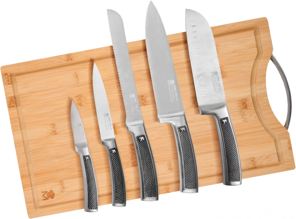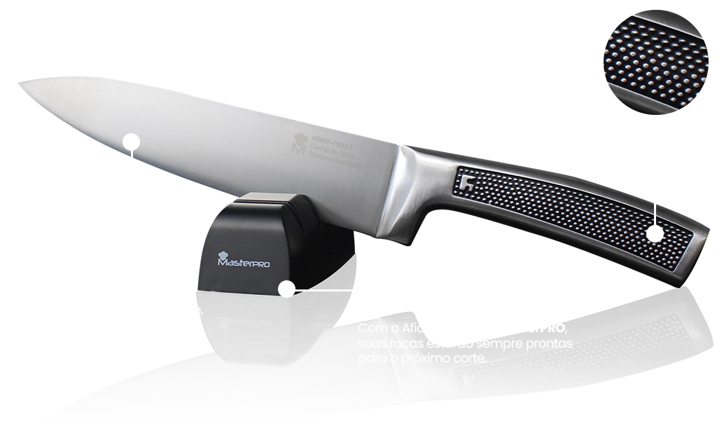 Uma linha exclusiva com 5 facas, uma tábua e um afiador da marca austríaca MasterPRO® para você colecionar!