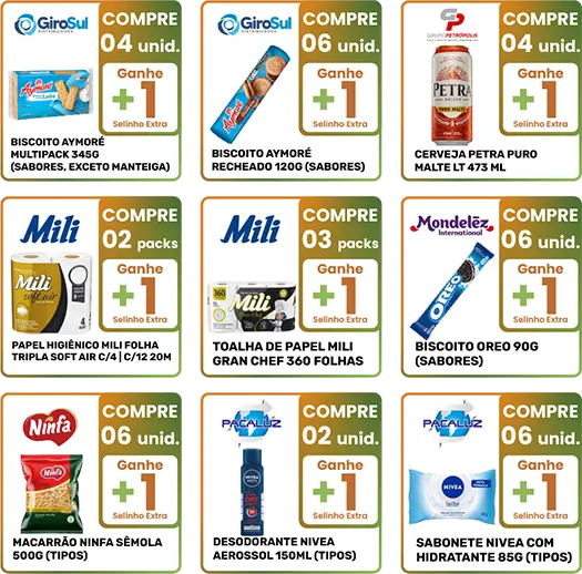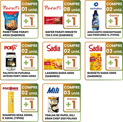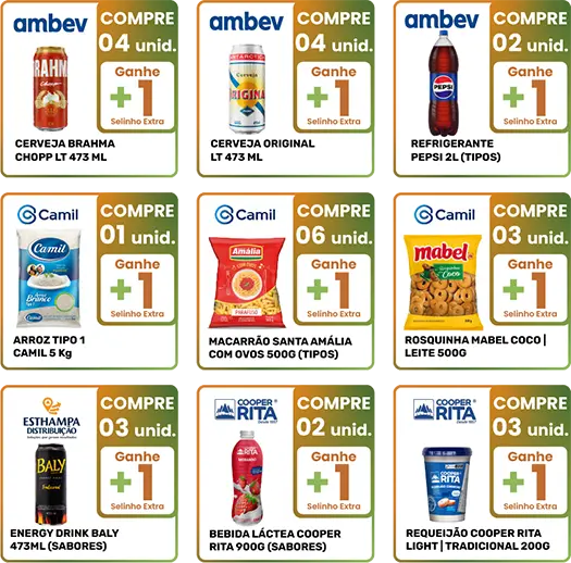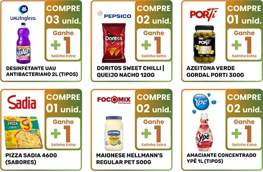 Exemplo: R$30,00 em compras + 1 produto acelerador = 2 selos.