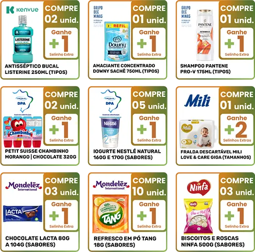 Compras nas lojas físicas: selos entregues no ato da compra pelo operador de caixa, mediante: